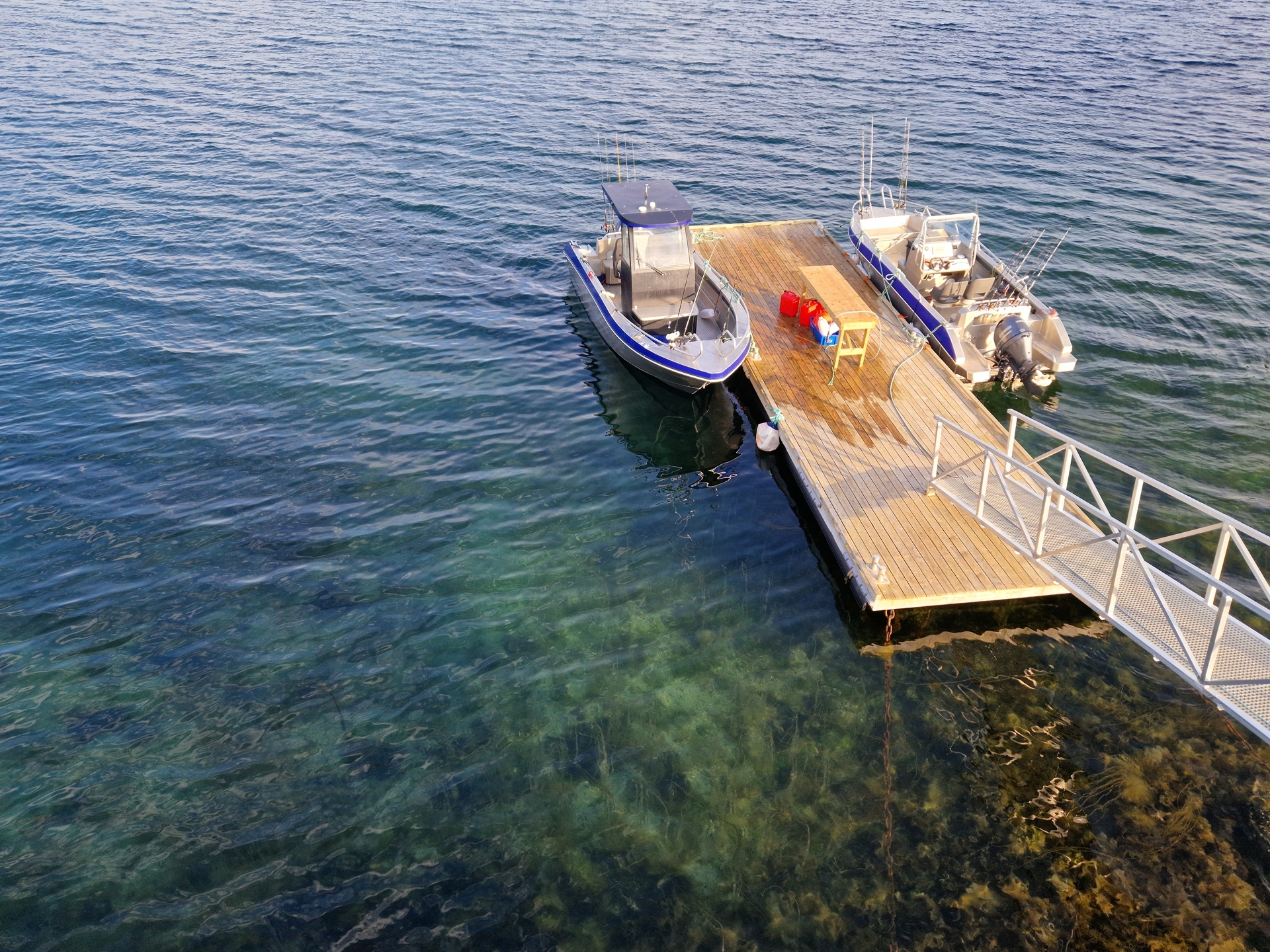 • Privat flytebrygge og fileteringshus like nedenfor huset
